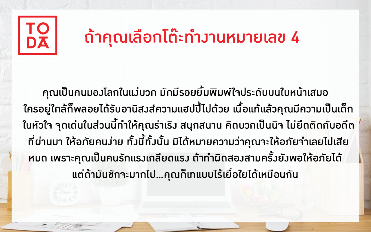 เลือกรูปโต๊ะทำงานที่ชื่นชอบที่สุดจากช้อยส์ 1-4 แล้ว ไปอ่านคำทำนายกันเลยค่ะ!