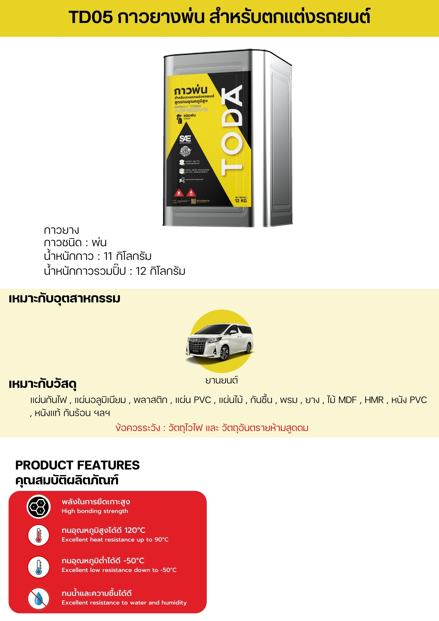 TD05 | กาวยางพ่น สำหรับตกแต่งรถยนต์ สูตรทนอุณหภูมิสูง