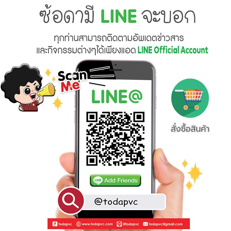 โดยการสั่งซื้อสินค้าผ่านทางพนักงานหน้าร้าน ตัวแทนขาย และ line@ TODA PVC เท่านั้น