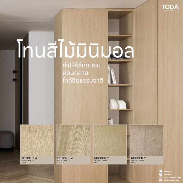 เคล็ดไม่ลับ ฉบับโตด้า เปลี่ยน Mood & Tone ง่ายๆด้วยInterior Film TODA จับกรุ๊ปมาให้แล้ว บอกเลยว่าสวยทุกโทน!!อยากจะบิ้วท์อิน รีโนเวท สไตล์มินิมอลหรือลอฟท์สไตล์ไหนเราก็เอาอยู่ติดง่ายไม่มีกลิ่นไร้รอยต่อ แถมพิเศษกันไฟลามด้วยน๊าวัสดุปิดผิว ทางเลือกใหม่ที่ตอบโจทย์กว่าเดิม
