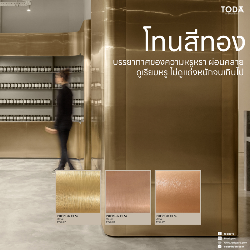 Interior Film TODA หรือฟิล์มตกแต่งภายในพร้อมกาวคุณภาพในตัว ที่ตอบโจทย์ผู้ที่ต้องการตกแต่งภายใน หรือพื้นที่ต่างๆ เช่น ลอบบี้ ลิฟท์ และเฟอร์นิเจอร์ อีกทั้งเป็นมิตรกับสิ่งแวดล้อม ช่วยลดระยะเวลาอันสั้นและจำกัดของหน้างาน